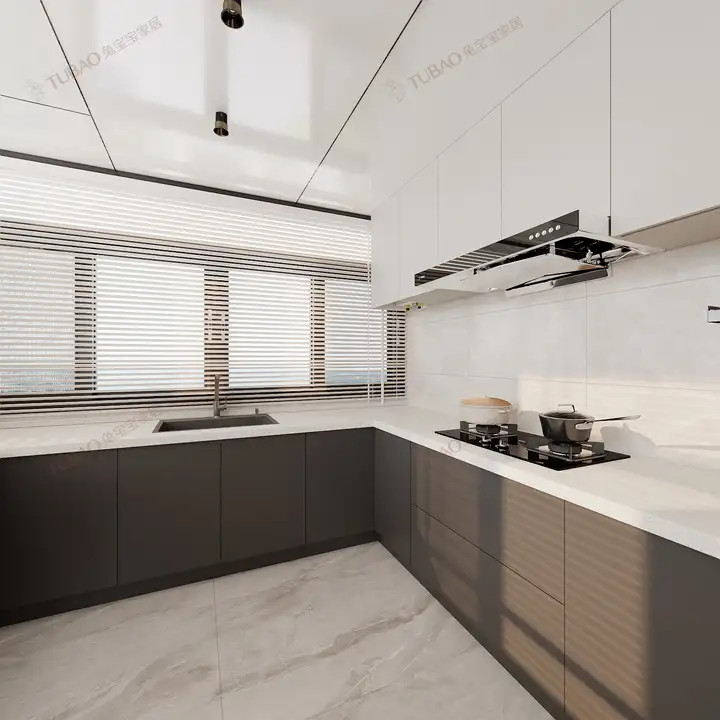 全屋定制橱柜选用高级灰与奶白撞色设计,