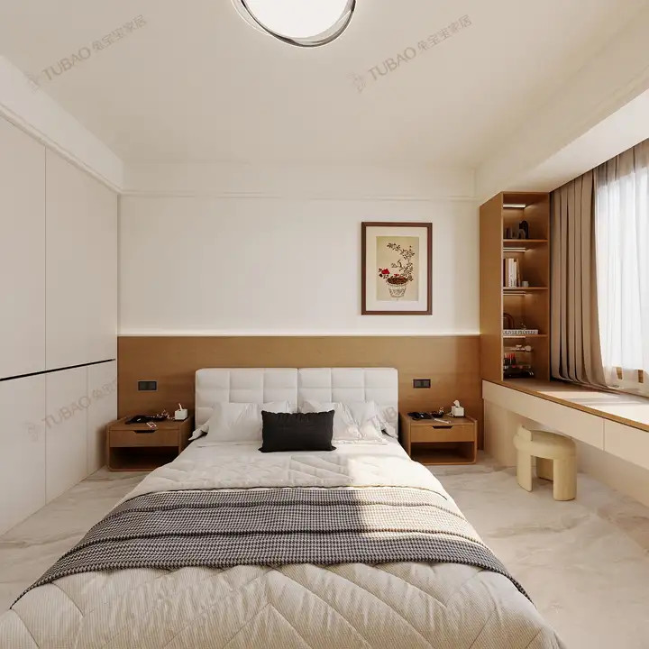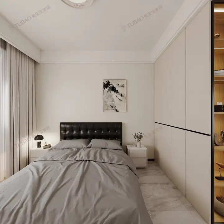 主卧以奶油白为基调,营造无压睡眠氛围。